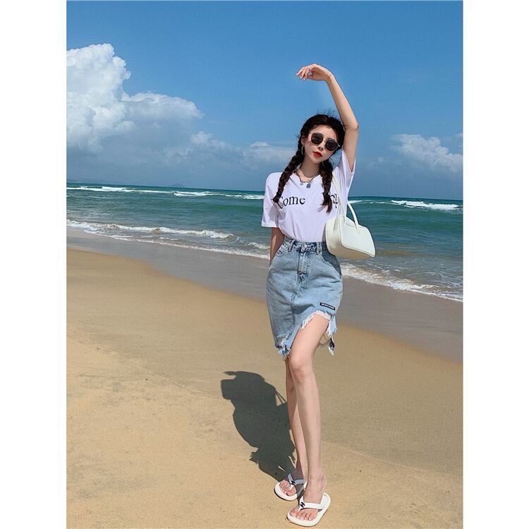 スカート サマー薄手ハイウェストウェストスリム 夏物 ブラックストロベリース75185775011