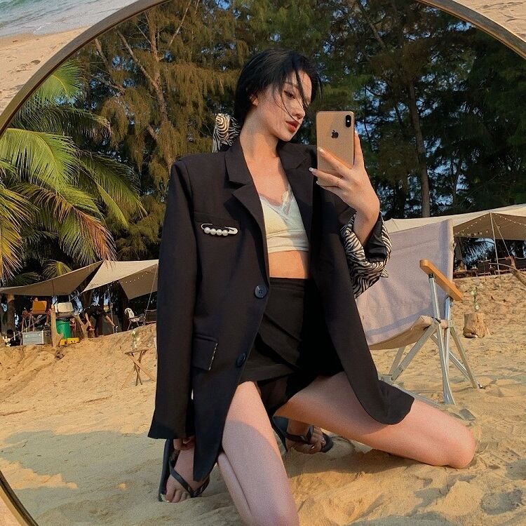 ジャケット ブラックルーズパターンサマースタイル 夏物 ブラックストロベリース31722589905