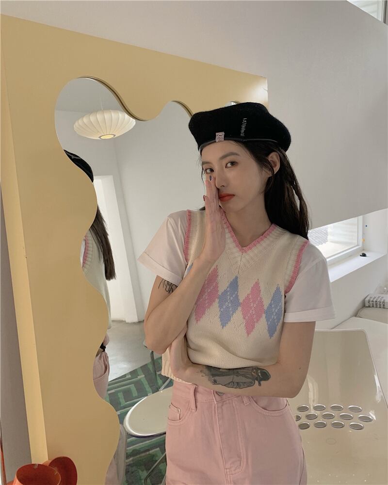 サマースタンダード薄手ニットトップス レッド レトロ 夏物 ブラックストロベリース7758888948