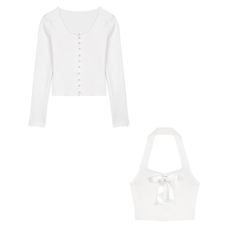 ホルターサマーショートリボンニットジャケット 夏物 ブラックストロベリース54968615158
