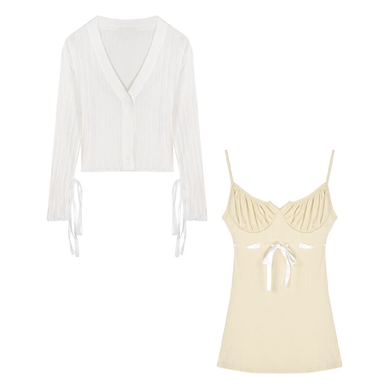色:黄色のベーススカート,白いカーディガン