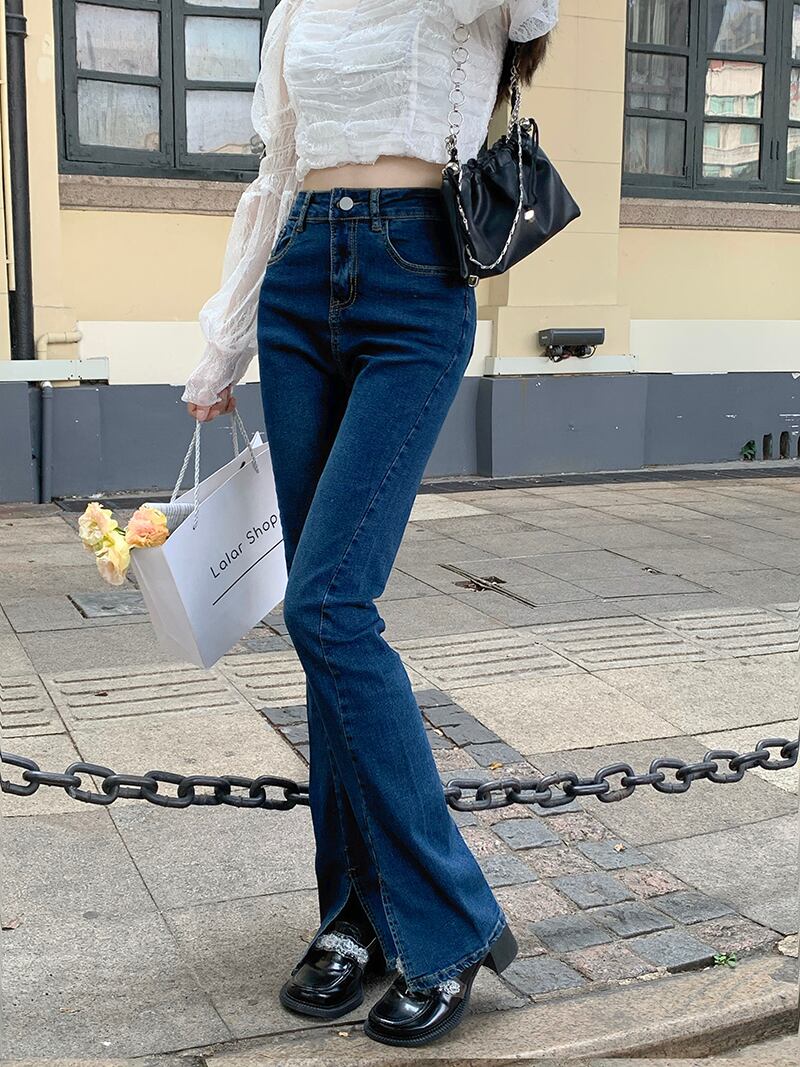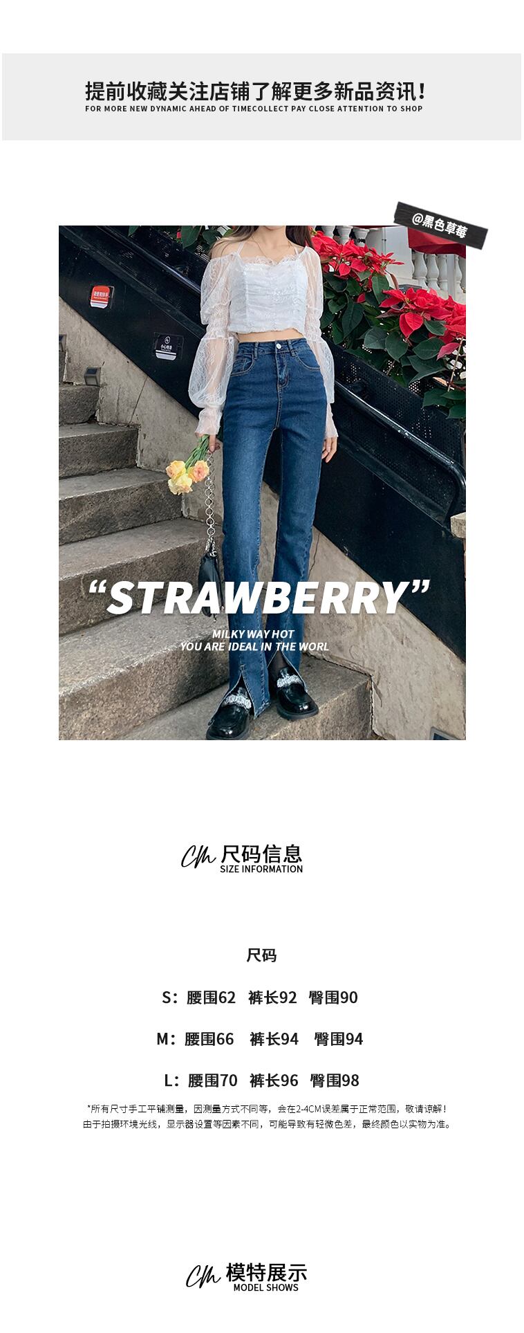 ジーンズ スリムハイウェストウェストサマースタンダード薄手パンツ レッド レトロ 夏物 ブラックストロベリース38717057372
