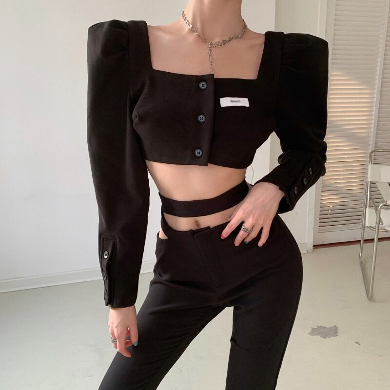 ショートジャケット スプリングサマー薄手ブラックトップス ロング ストリート 春物 夏物 ブラックストロベリース22912066760
