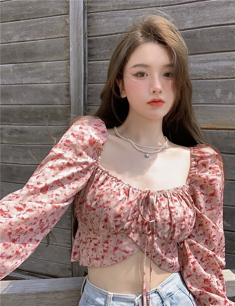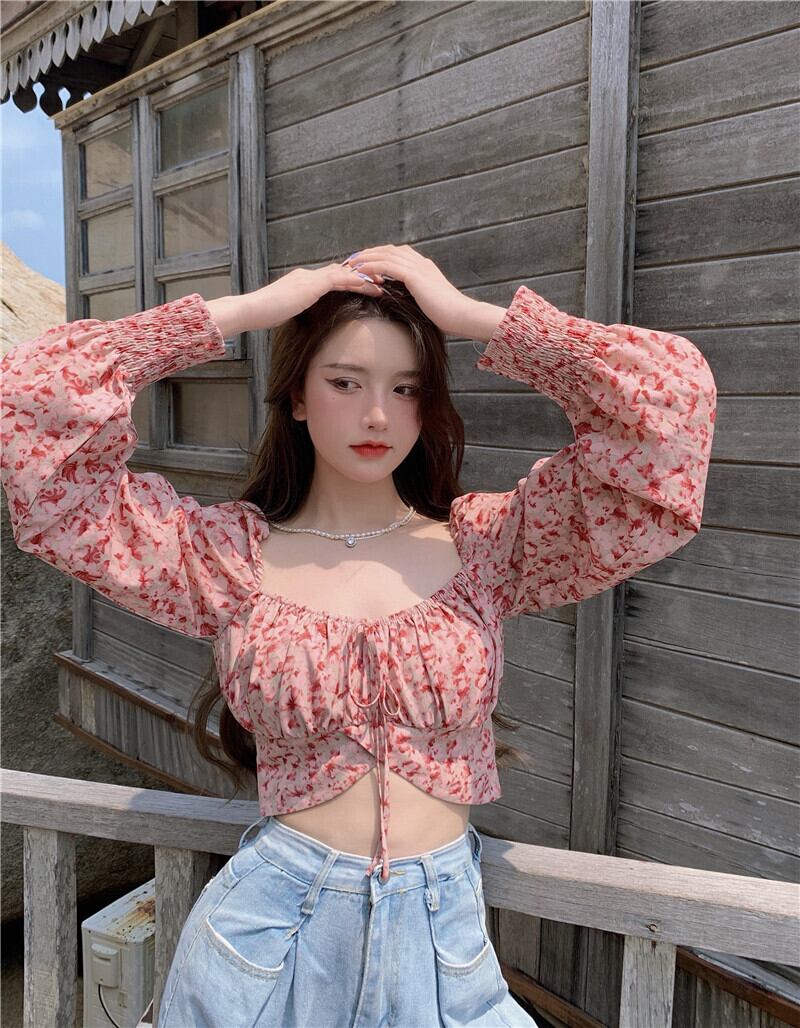 スタンダードフローラルレースシフォンシャツ レディースサマー薄手 ロング ピンク レトロ 大人ガーリー スウィート キュート カジュアル 夏物 花柄 ブラックストロベリース68199255409