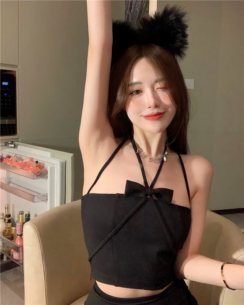 ホルターサマーブラックシャツ トップス 大人ガーリー スウィート キュート カジュアル 夏物 ブラックストロベリース71238793532