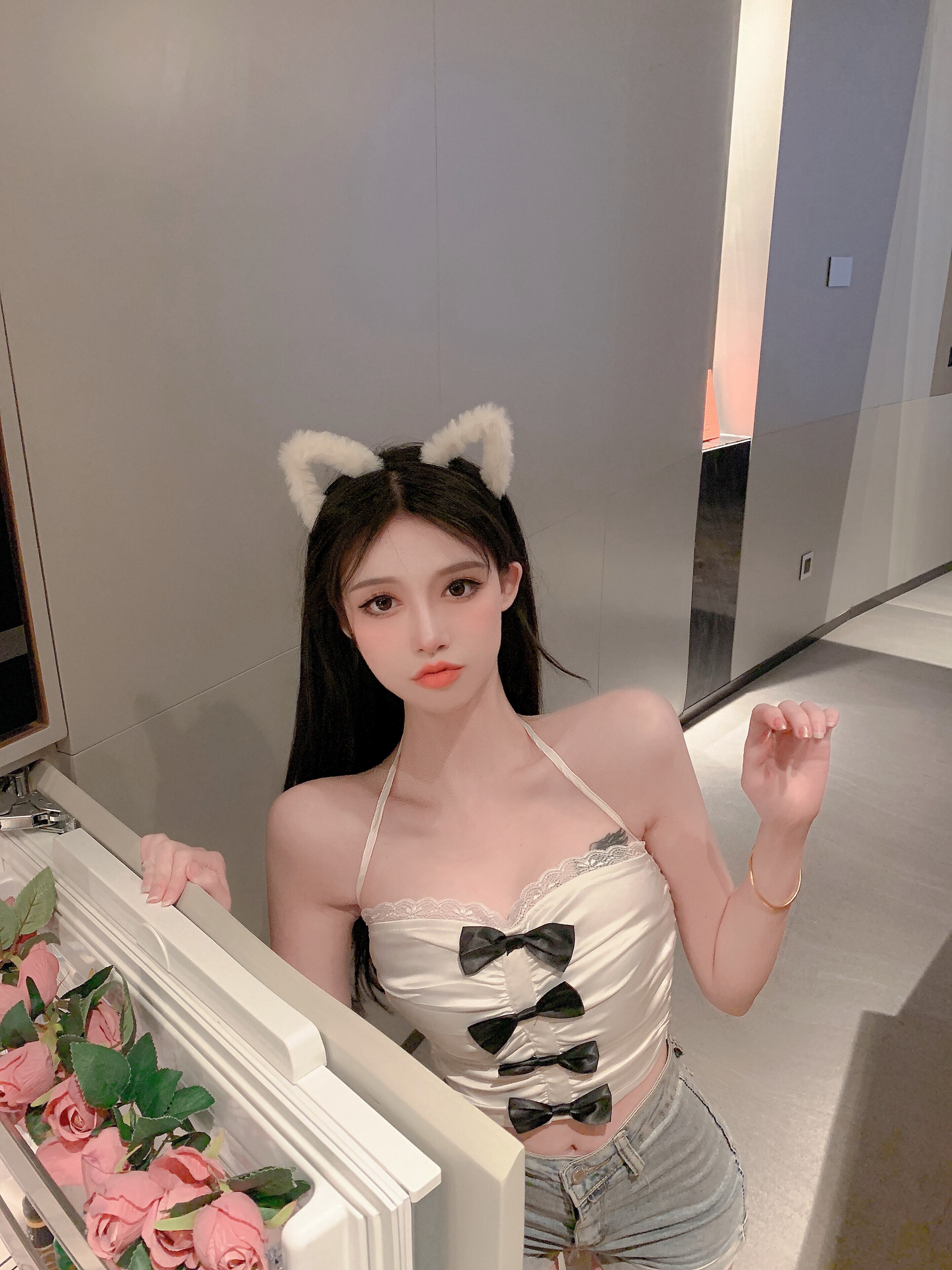 ホルターサマーリボントップス ショートジャケット 夏物 ブラックストロベリース38761104756