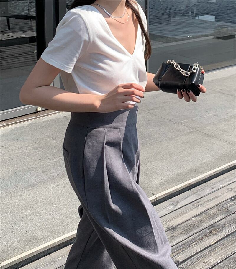 カジュアルパンツ サマー薄手ハイウェストウェストルーズワイドレッグ 夏物 ワイドパンツ ブラックストロベリース40839722351