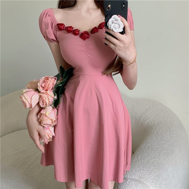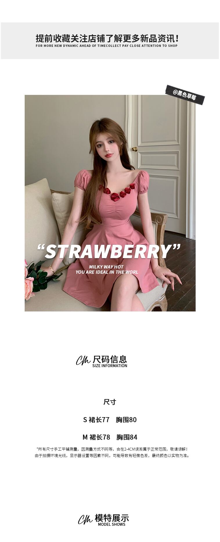 ドレス サマースタイルショートスカート ウェスト 大人ガーリー スウィート キュート カジュアル 夏物 ブラックストロベリース73227697987