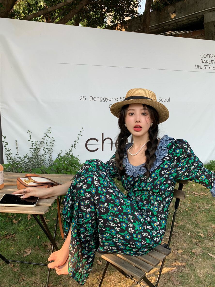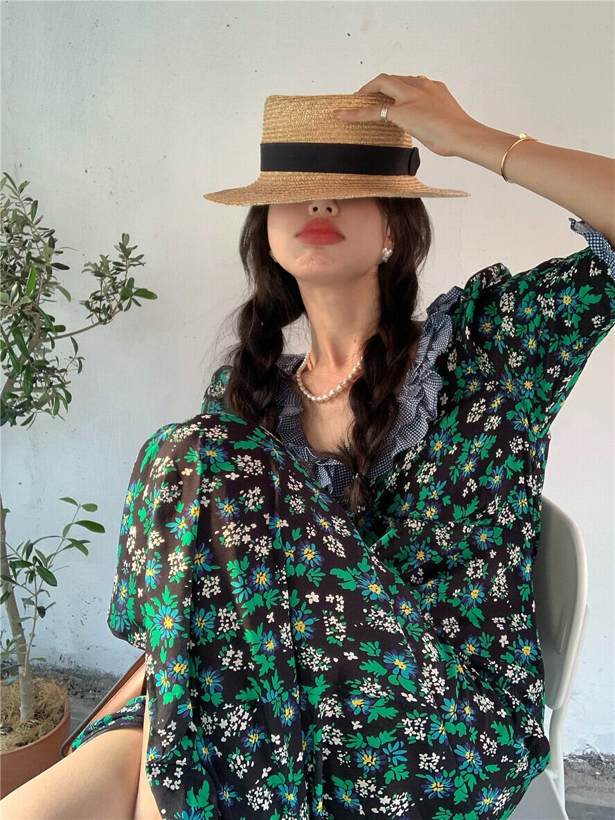 フローラルドレス レーススリットスカート サマースタンダード レトロ 大人ガーリー スウィート キュート カジュアル 夏物 花柄 ブラックストロベリース71495026823