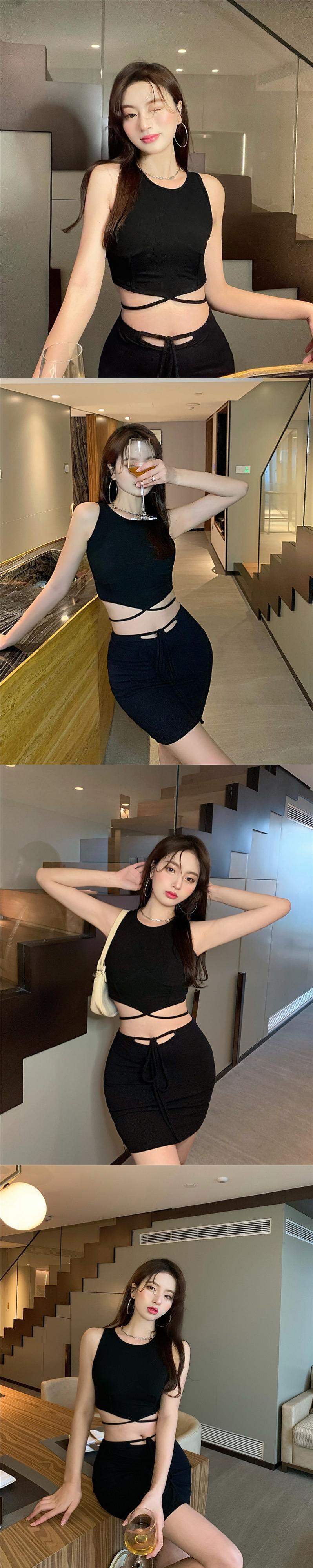 スタイルハイウェストウェストスカート セット サマー 大人ガーリー スウィート キュート カジュアル 夏物 ブラックストロベリース91894741855