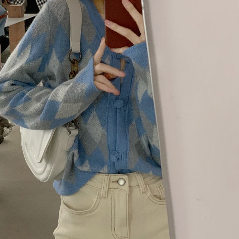 ニットセーター レディースルーズトップス スプリングVネックスタンダードカーディガンジャケット レトロ 春物 ブラックストロベリース29663291698