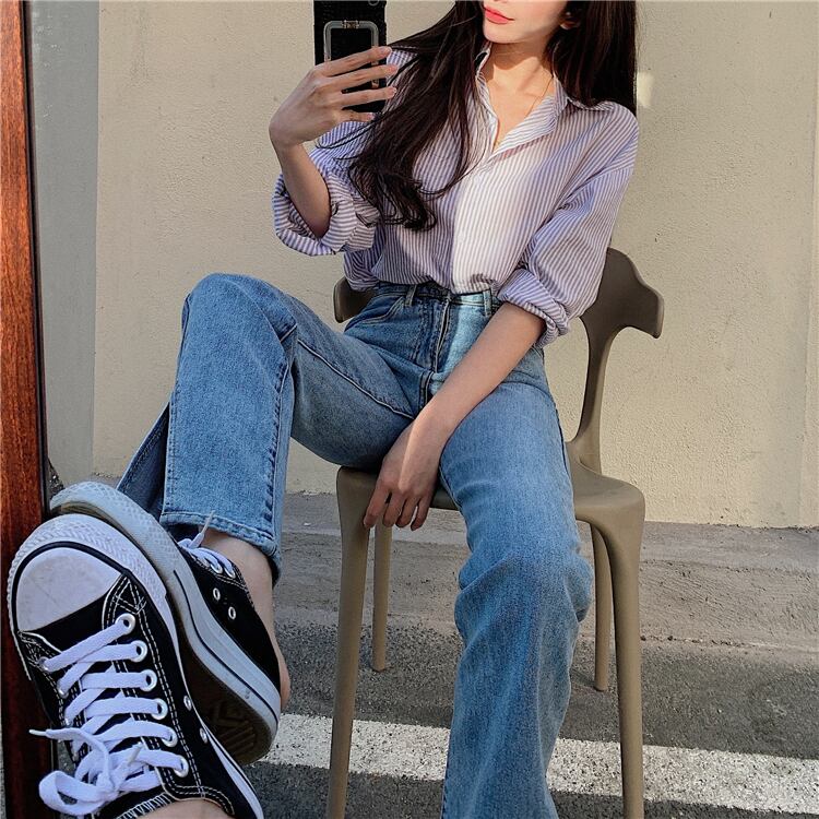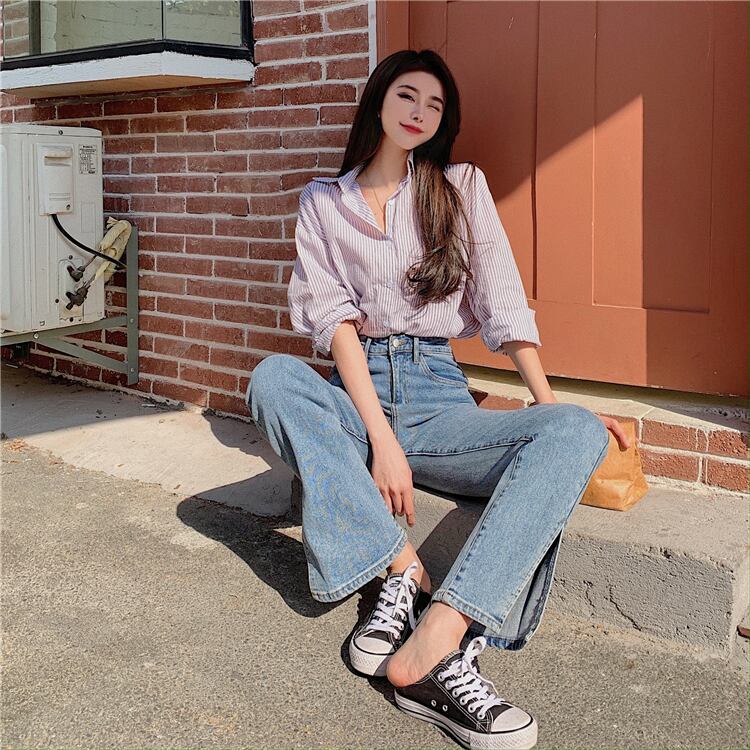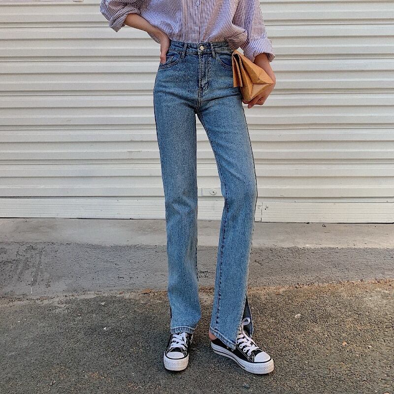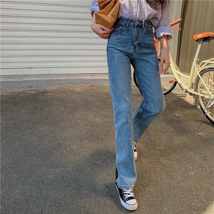 ジーンズ ハイウェストウェストスリムルーズスプリングスタンダードダークパンツ レトロ 春物 ブラックストロベリース8142308367