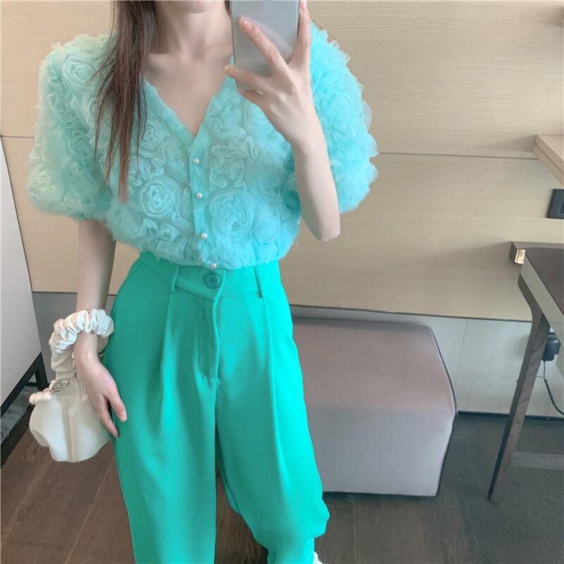 シャツ Flowerデザイン サマースタンダードトップス レトロ 夏物 フラワーデザイン ブラックストロベリース48654343076