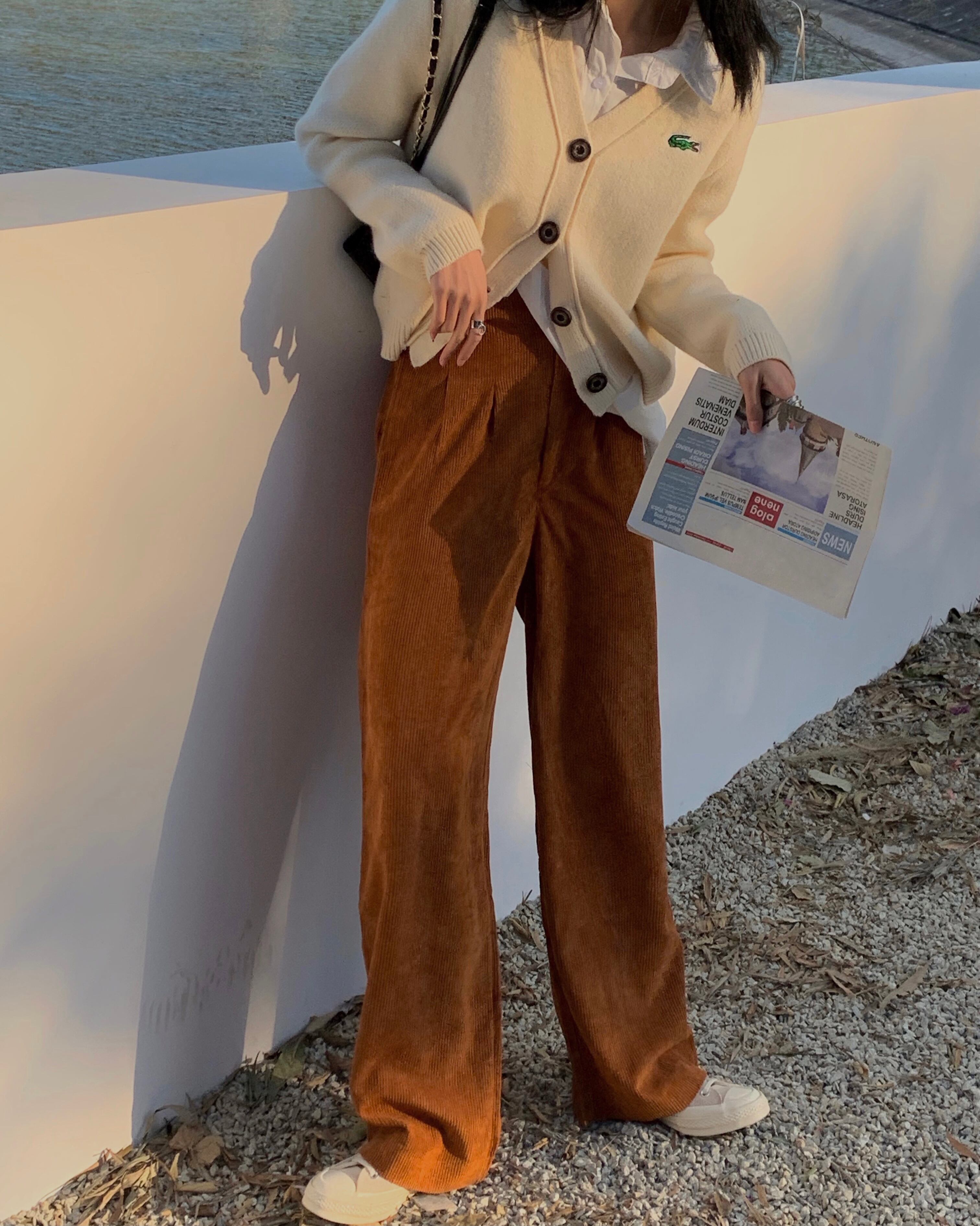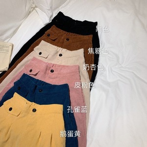 コーデュロイワイドレッグハイウェストウェストスリムブラックルーズパンツ スプリング 春物 ワイドパンツ ブラックストロベリース99979925138