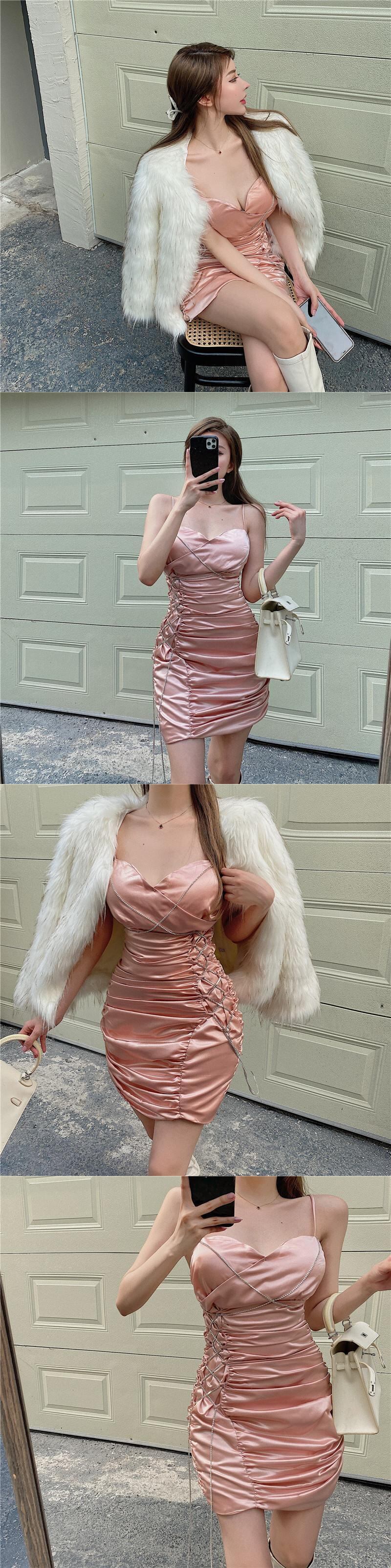 ドレス スリムウェストスカート スプリング ピンク 春物 ブラックストロベリース30740398892