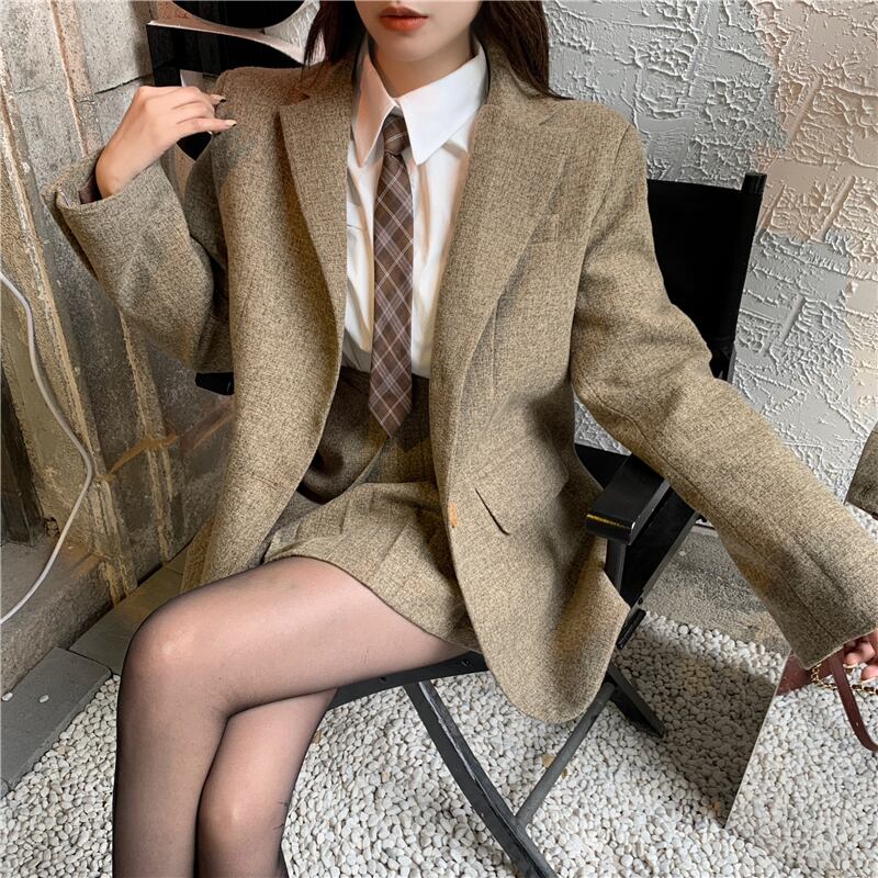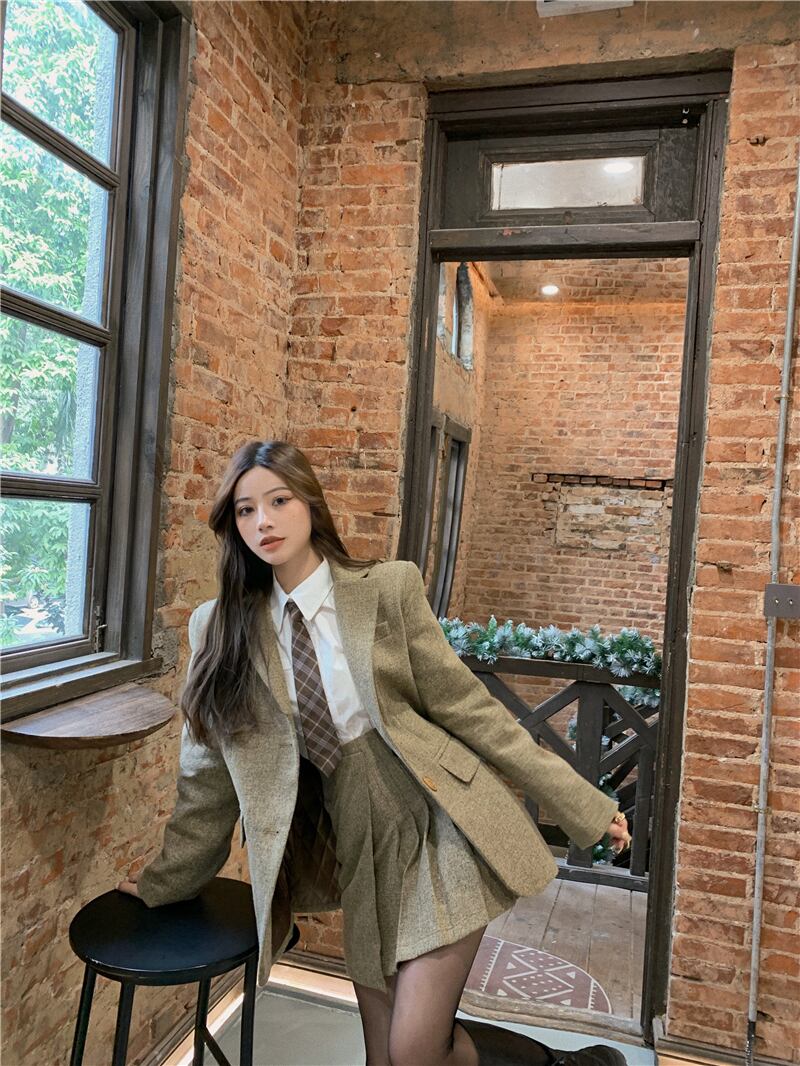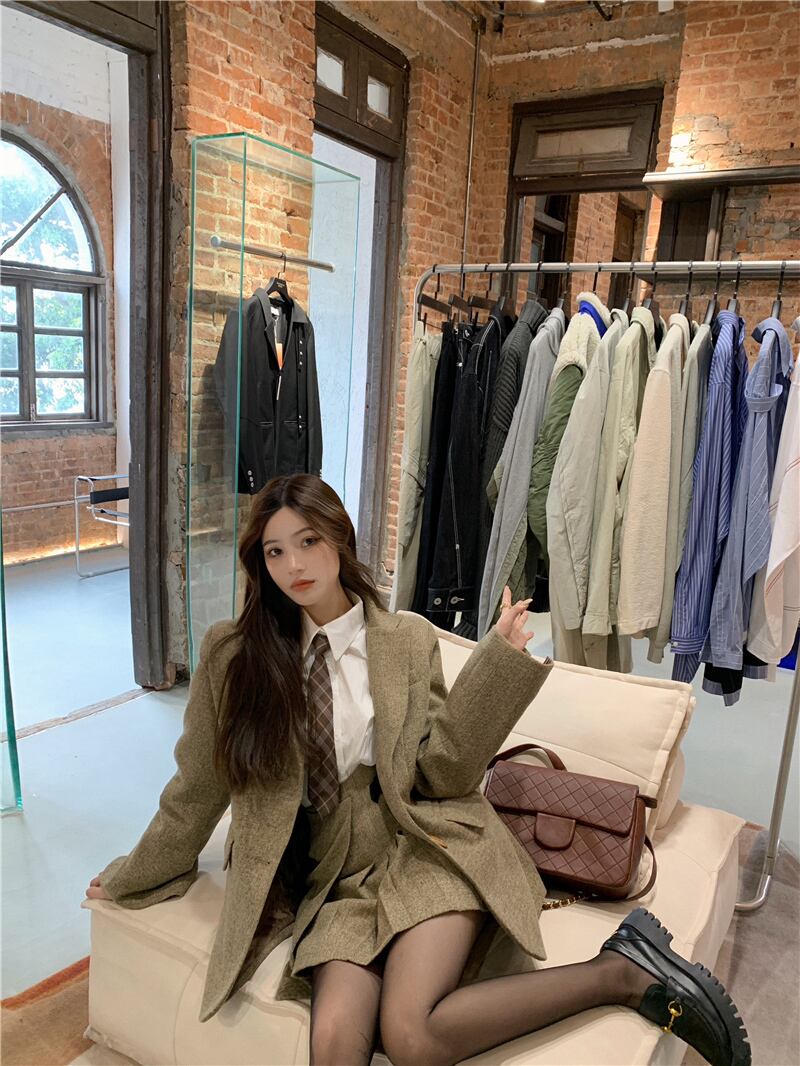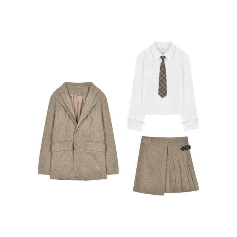 色:コーヒースーツ,コーヒー色のスカート,シャツ+ネクタイ