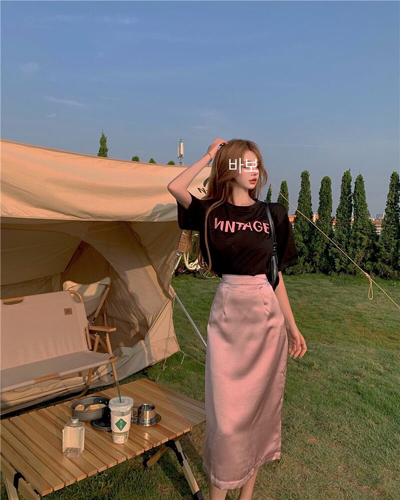 Tシャツ サマーロングルーズブラックバックトップス 夏物 ブラックストロベリース66997075467
