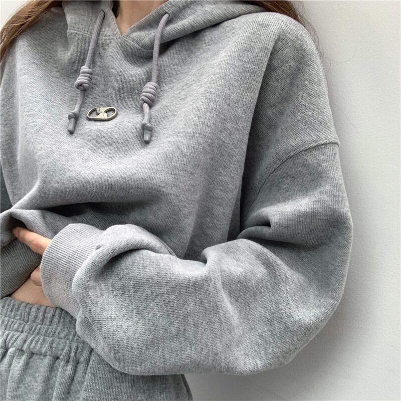 セーター スタイルルーズグレーフードトップス スプリング 春物 ブラックストロベリース89164264782