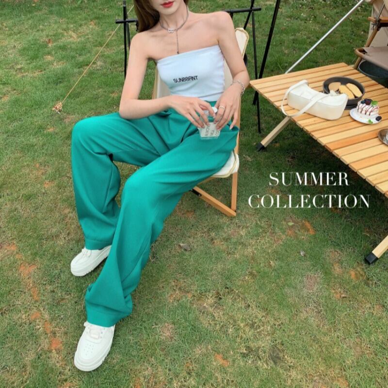 パンツ グリーンハイウェスト薄手サマールーズ 夏物 ブラックストロベリース37969722901