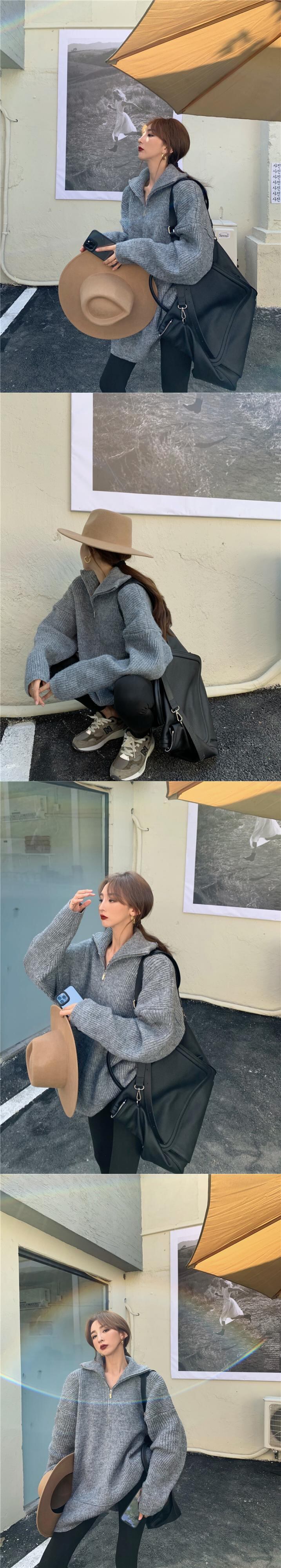 セーター ジッパーグレーニットスプリングルーズトップス 春物 ブラックストロベリース87416005402