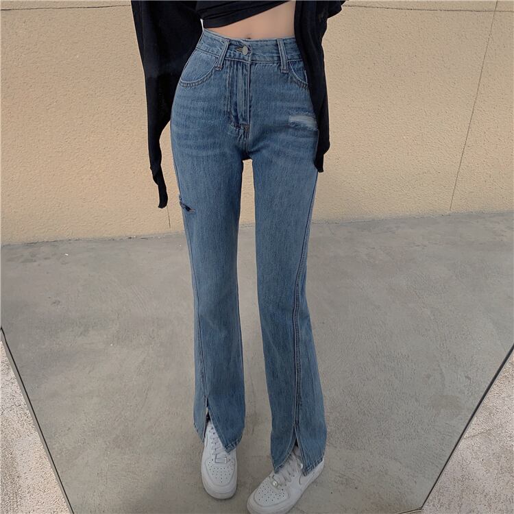 ジーンズ ウェストスリムワイドレッグパンツ スプリング 春物 ワイドパンツ ブラックストロベリース40564968690