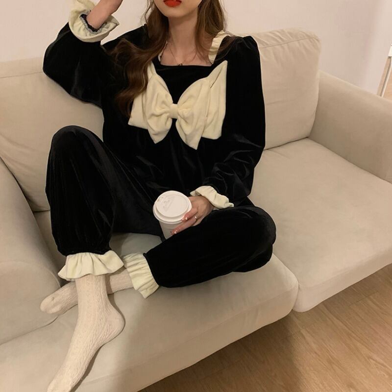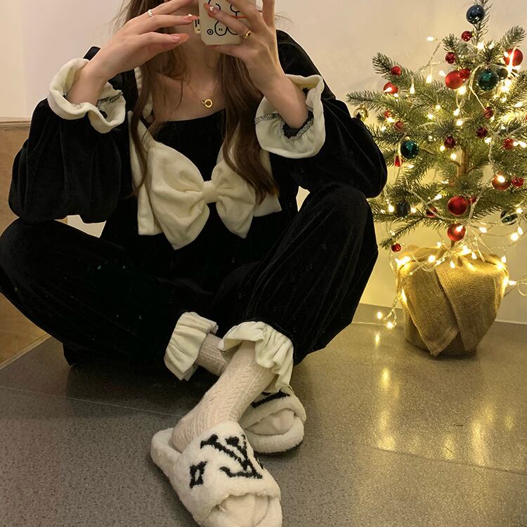 レディースオータムウィンターベルベットカジュアルセット 大人ガーリー スウィート キュート 秋物 冬物 ブラックストロベリース38350796170