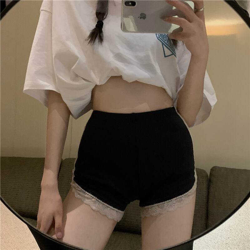レースレギンス サマー薄手ショーツ ブラックハイウェストパンツ 夏物 ブルマー ブラックストロベリース29505116191