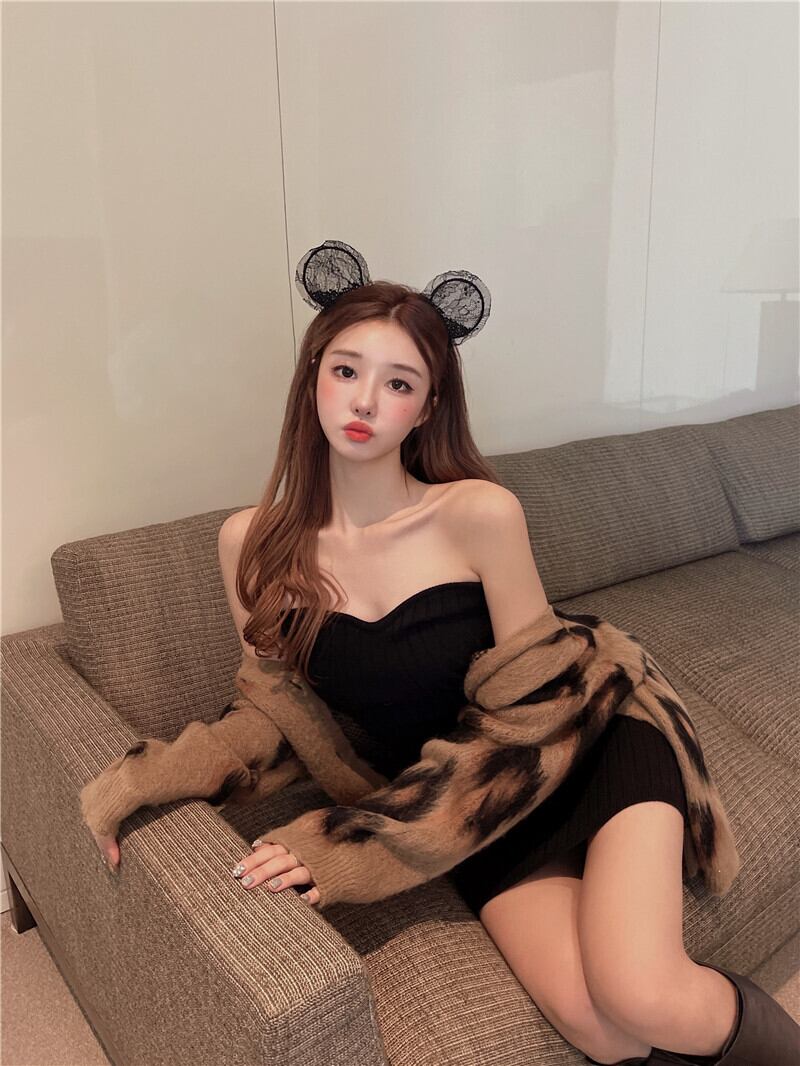 レオパードプリント柄セーター レディーススタンダードジャケット オータムウィンターカーディガン レトロ 秋物 冬物 ブラックストロベリース2050577402