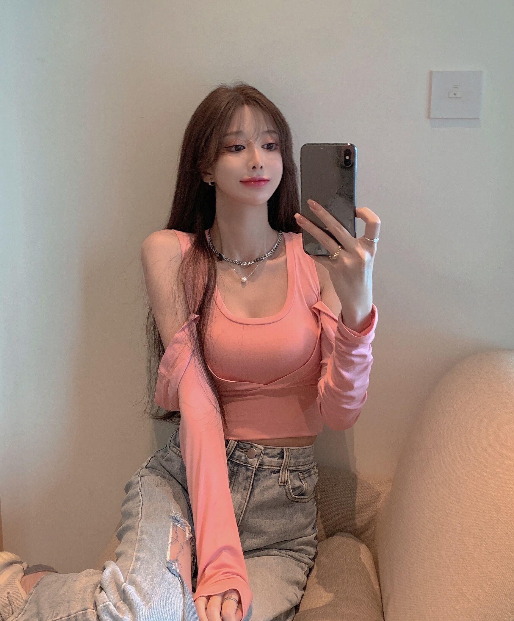 Tシャツ シャツ ストラップレスサマースリムトップス ロング 夏物 ブラックストロベリース22158118745