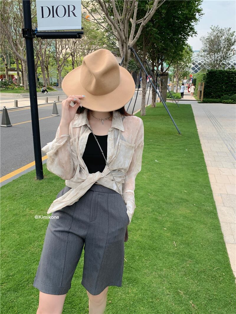 シャツ ルーズホワイトジャケット サマートップス ロング 夏物 ブラックストロベリース84238352670