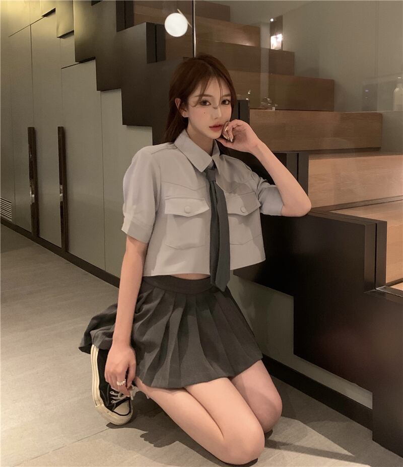 色:ネクタイと灰色のシャツ,グレーのプリーツスカートが光漏れを防ぎます