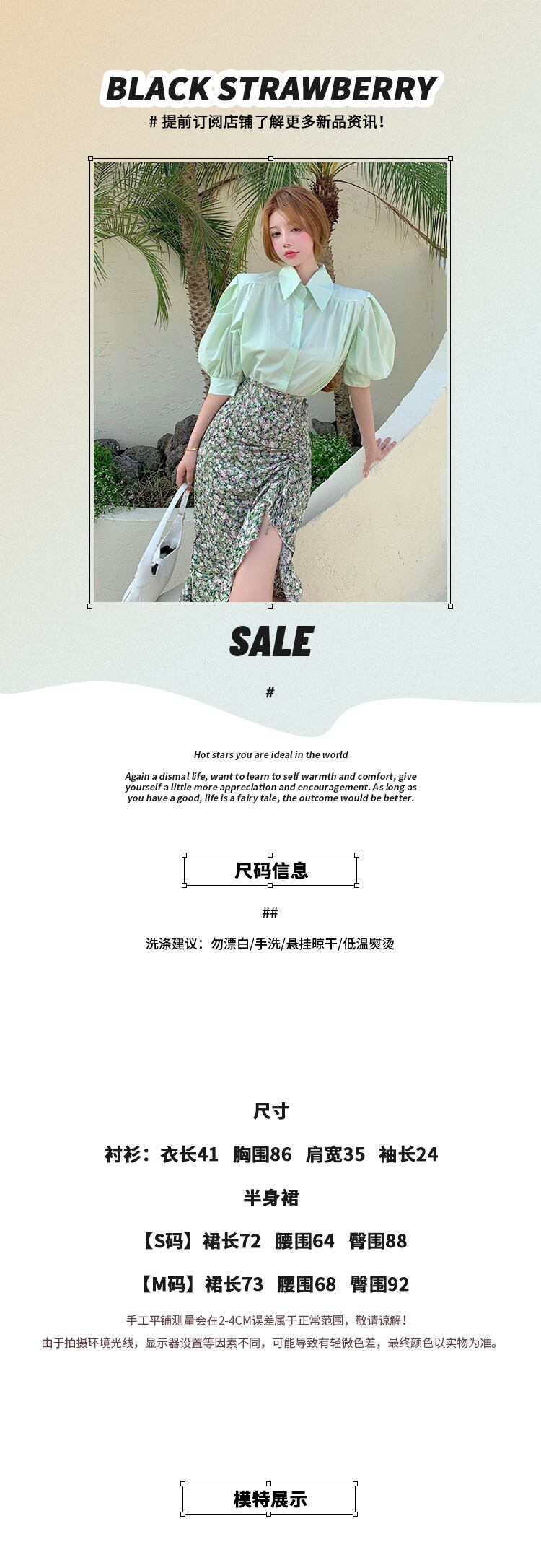シャツ グリーンルーズスリーブサマートップス 夏物 ブラックストロベリース46170643566