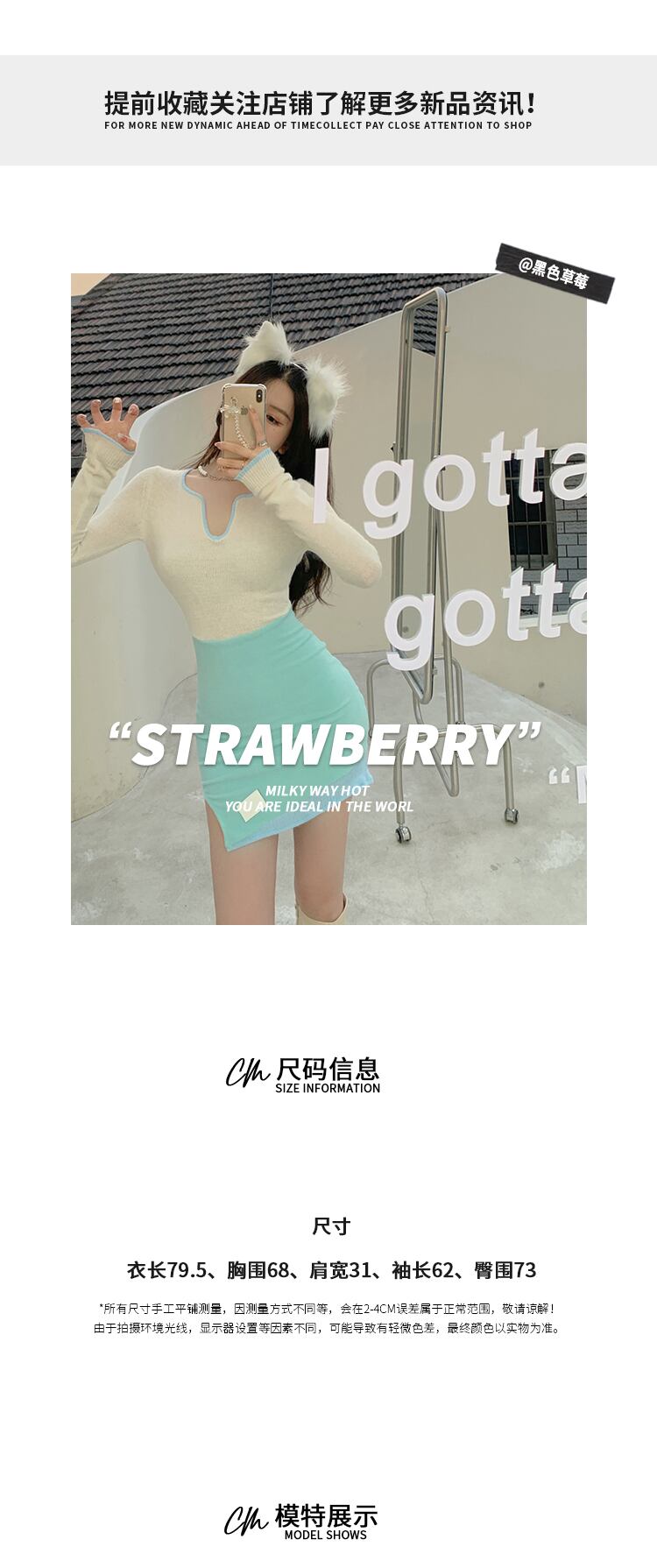 ニットドレス スリットショートスカート スプリングウェスト ロング 春物 ステッチ ブラックストロベリース437811503