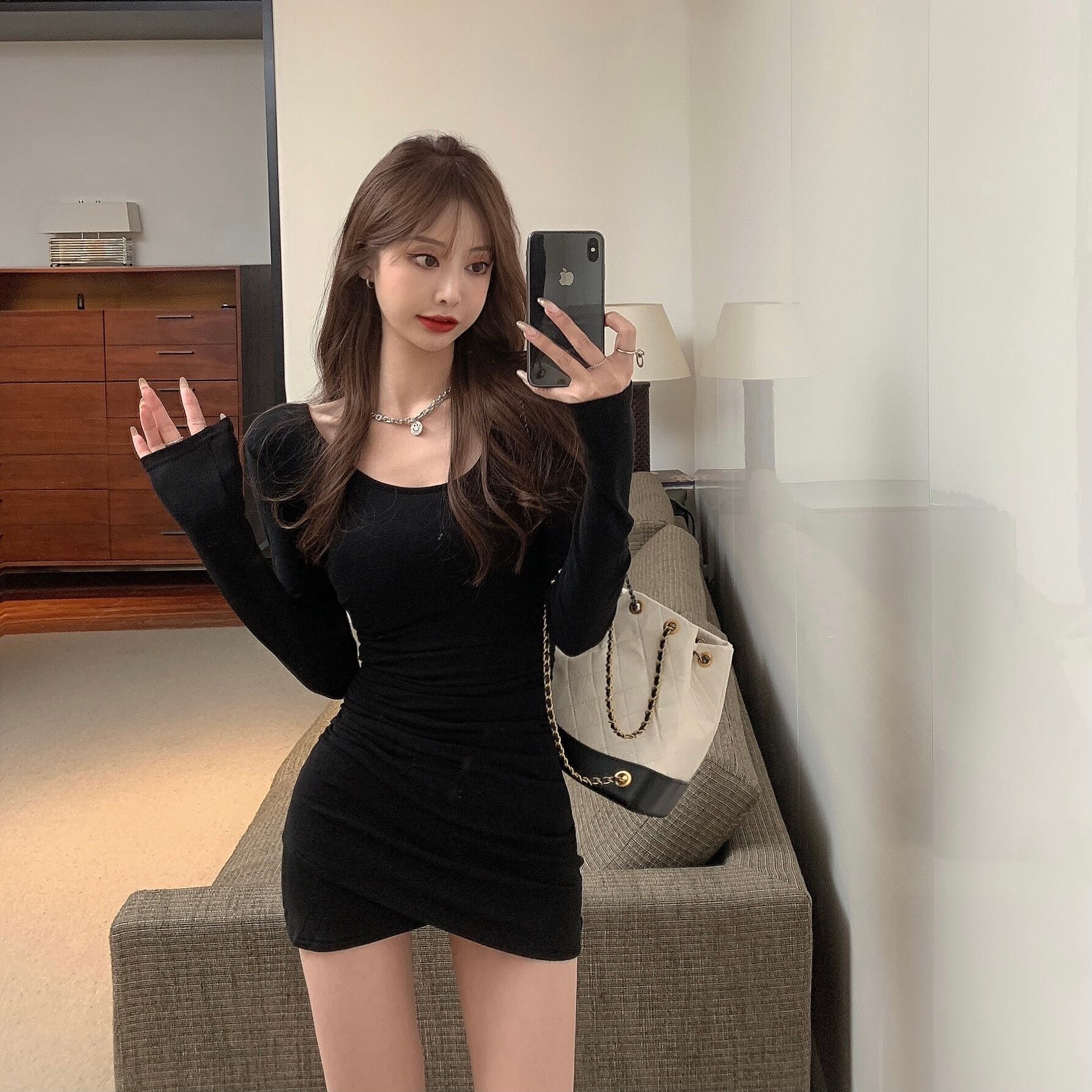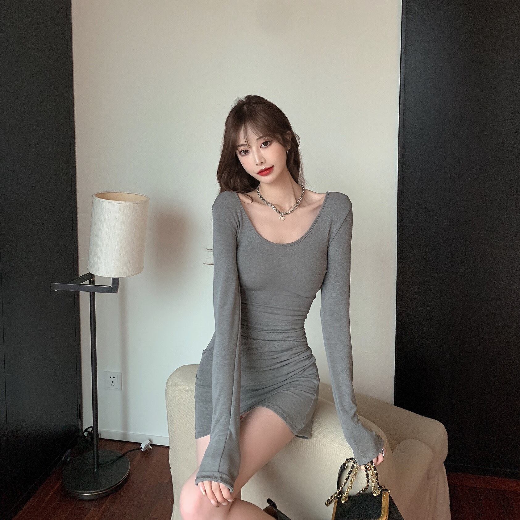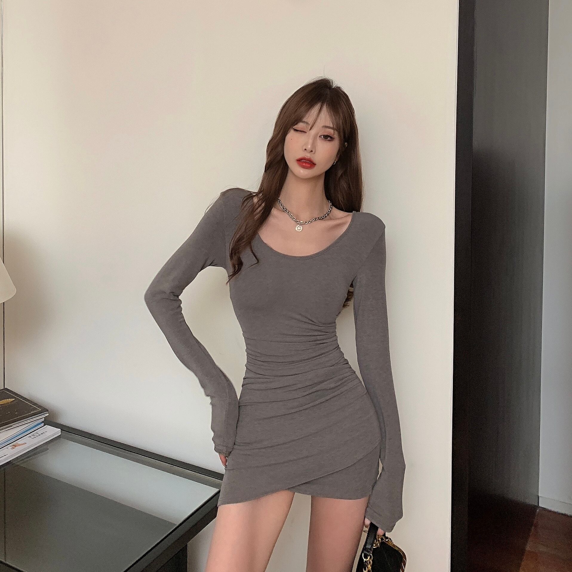 ドレス ショートスカート スプリンググレーウェストスリム ロング 春物 ブラックストロベリース83698337645