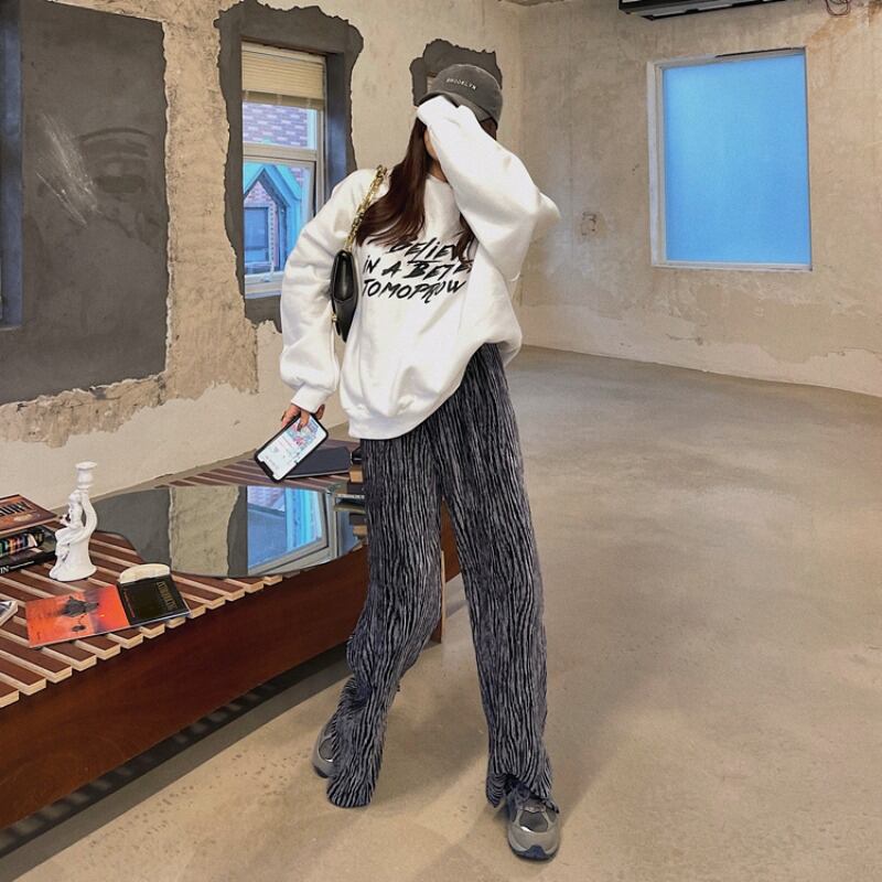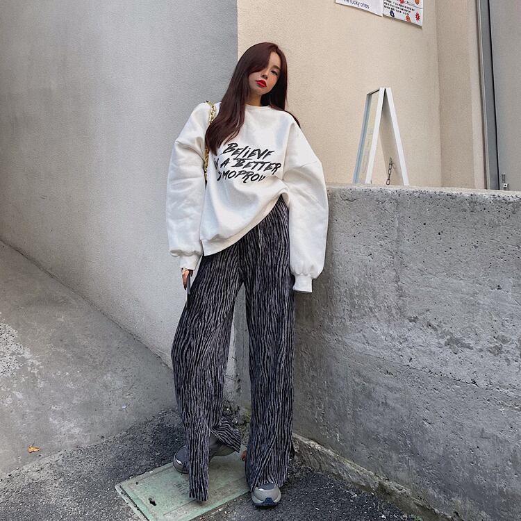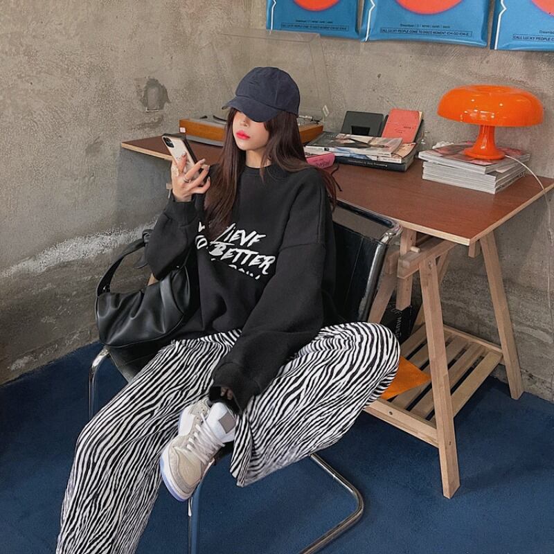 スウェット レディースホワイトルーズジャケット ラウンドネックトップス オータムウィンター 秋物 冬物 Oネック ブラックストロベリース7769506158