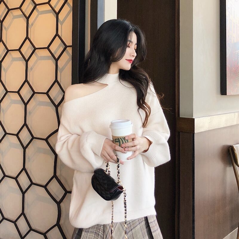 セーター ホルターニットジャケット レディースオータムウィンターホワイトトップス 秋物 冬物 オフショルダー ブラックストロベリース83987528467