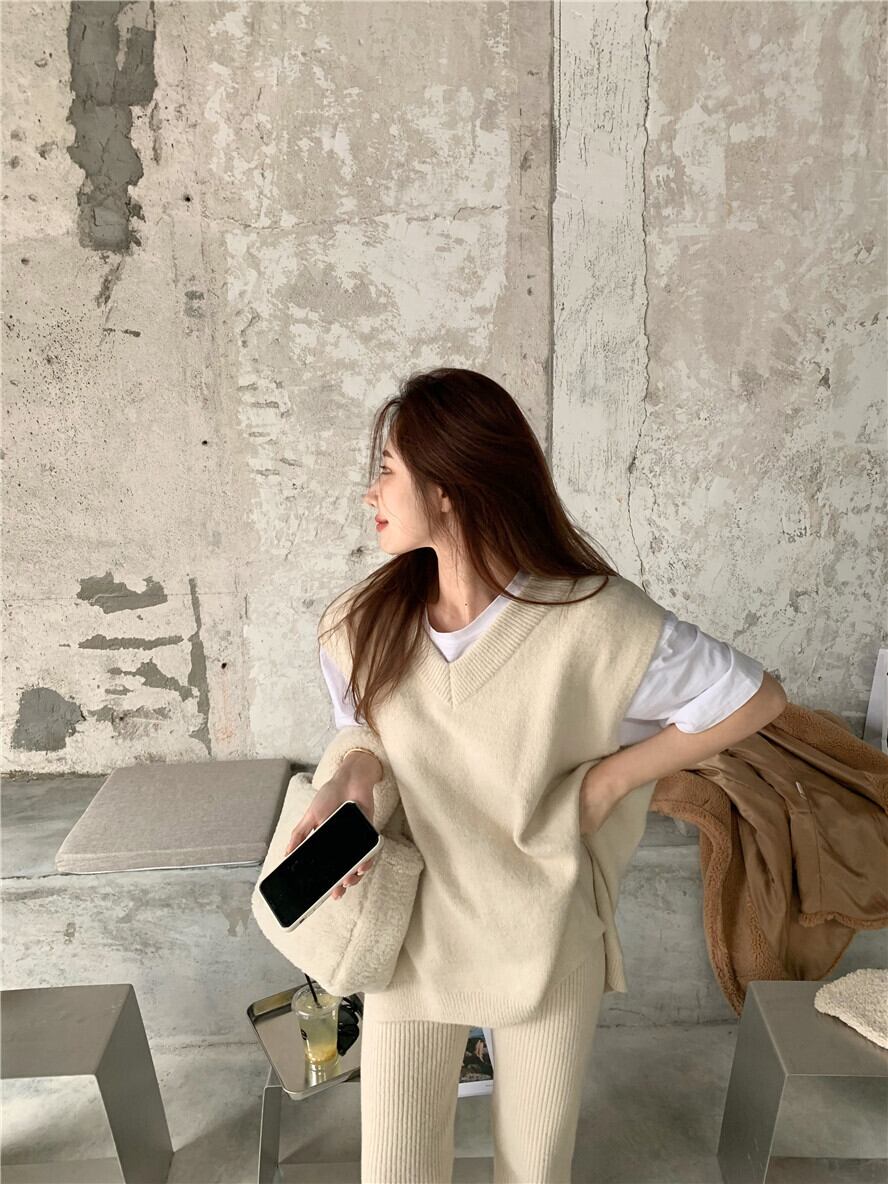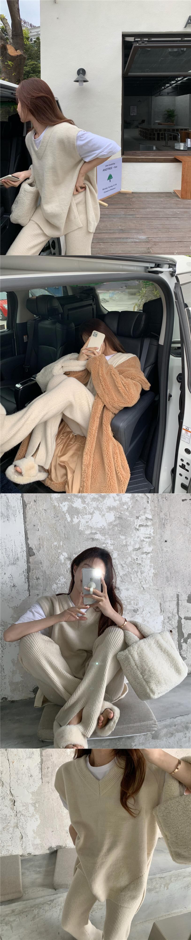 パンツ ハイウェストスリムスプリングルーズニット 春物 ブラックストロベリース64609617272