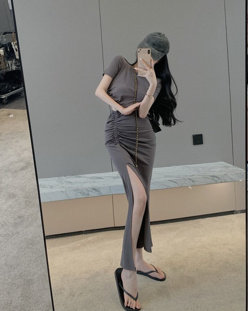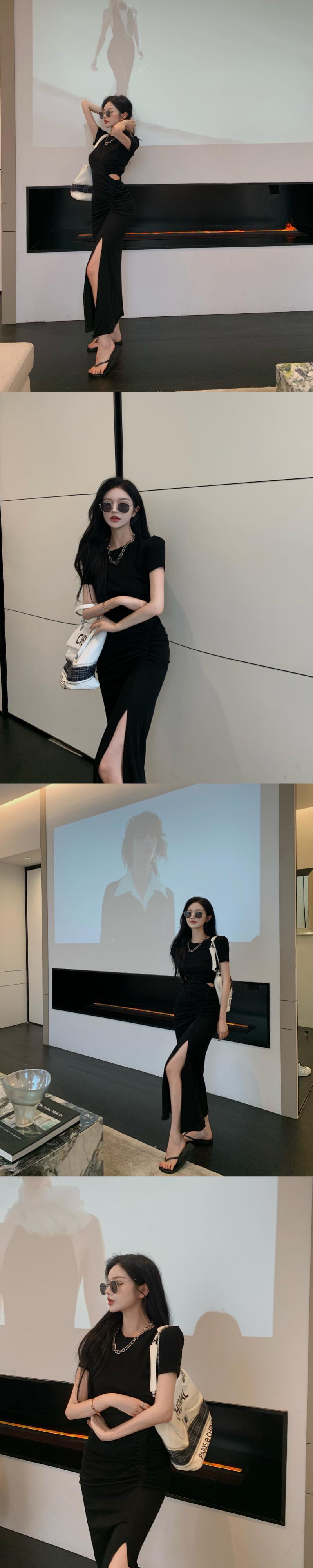 ドレス ウェストスカート サマースリム半袖スリーブ ショート ハーフスリーブ 夏物 ブラックストロベリース84360673173