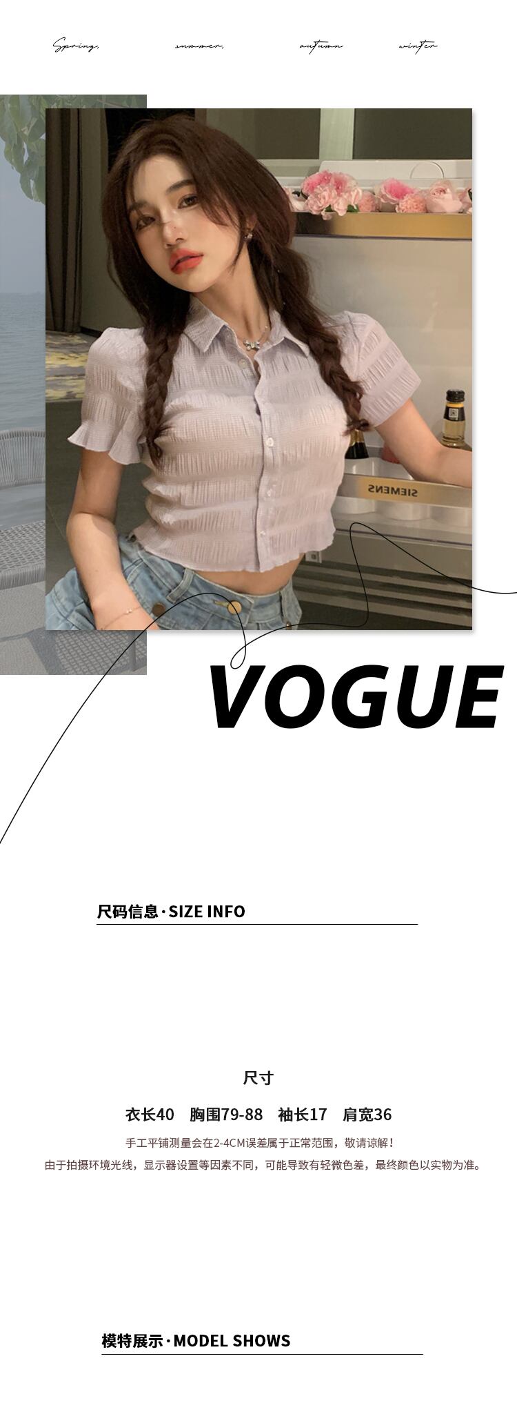 シャツ ショート格子柄スリーブサマートップス 夏物 パープル ブラックストロベリース72577468569