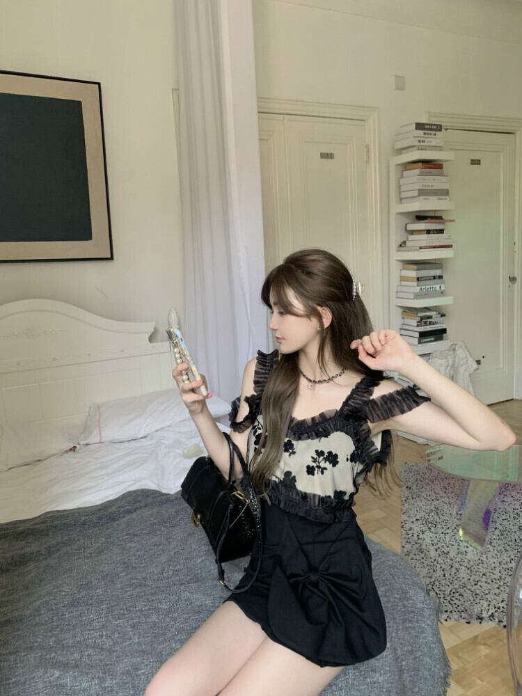 レースサマーメッシュ刺繍ジャケット 夏物 ピュア ブラックストロベリース62154812544