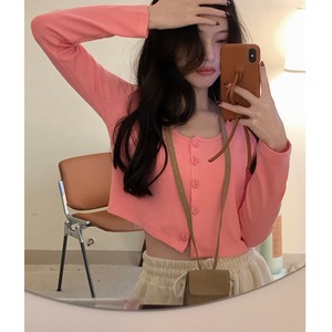 ニットカーディガンジャケット スプリングセーター スリムショートシャツ ロング 春物 ブラックストロベリース53987484306