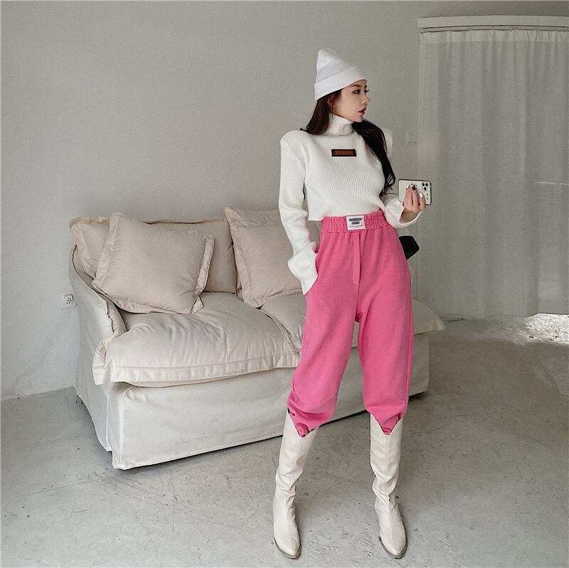 色:白いセーター,緑のセーター,黒いセーター,ピンクのパンツ,白いズボン,オレンジパンツ