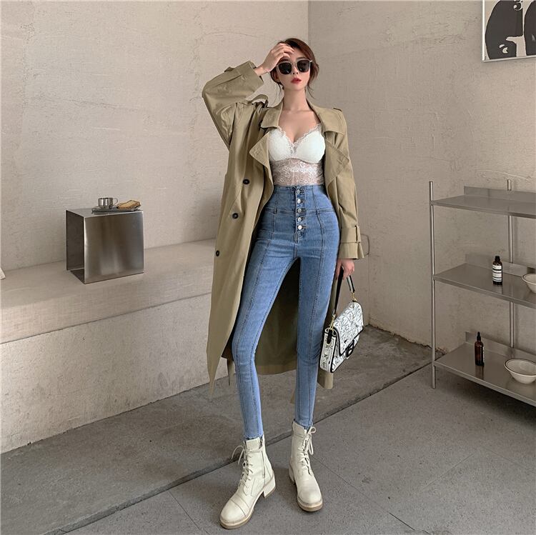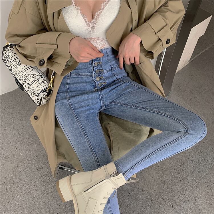 ジーンズ ハイウェストウェスト薄手オータムウィンターブルーパンツ 秋物 冬物 ブラックストロベリース57699377829