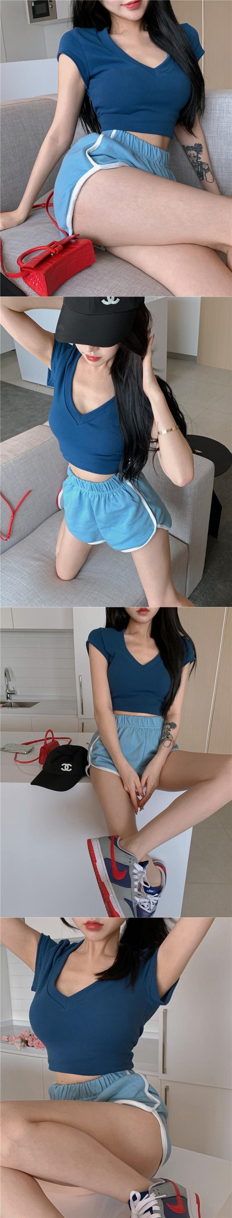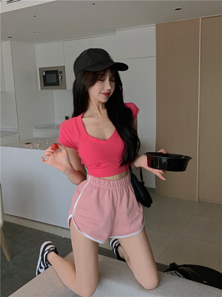 Tシャツ ショートVネックブルートップス サマースタイル 夏物 ピュア ブラックストロベリース21987734821