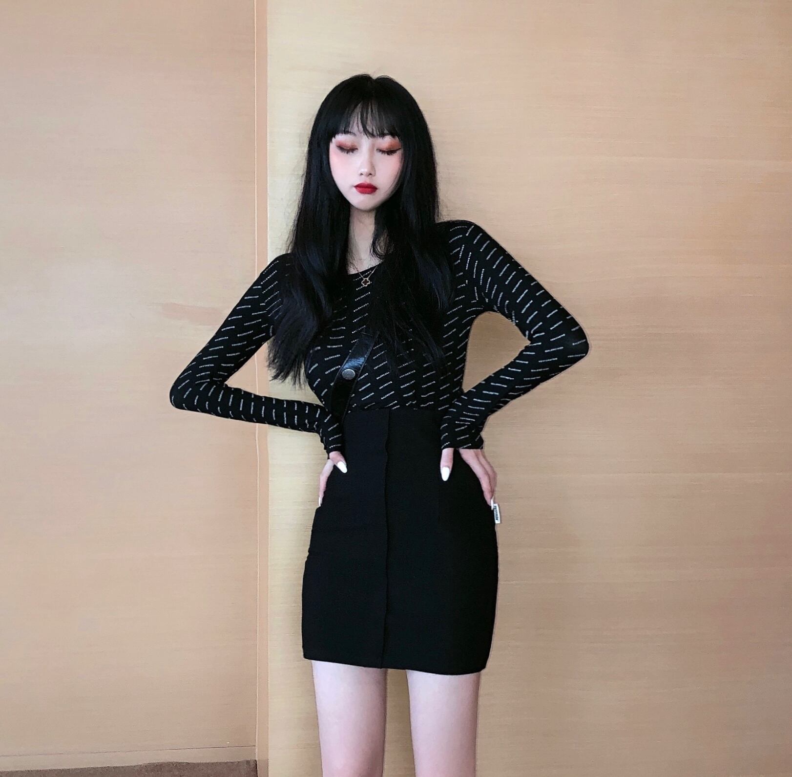 スカート ハイウェストウェストAラインショートスプリングブラック 春物 ブラックストロベリース97258077418