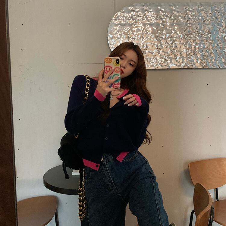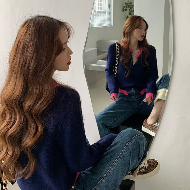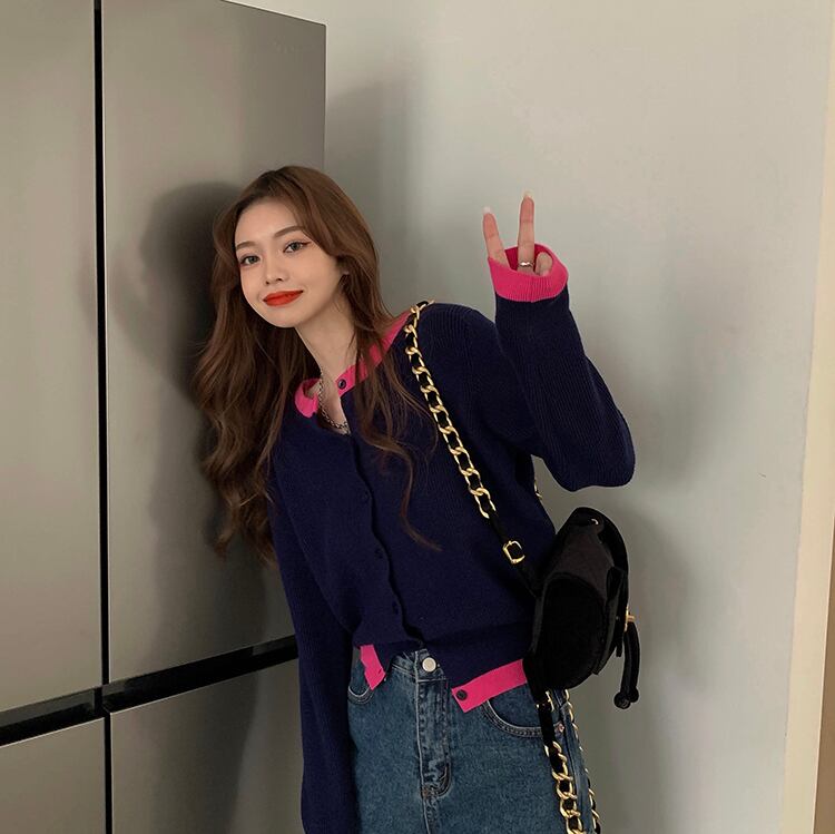 ニットセーター カラールーズカーディガンジャケット スプリングスタイルトップス 春物 ステッチ ブラックストロベリース49595361337