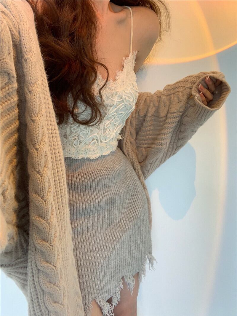 ニットスカート Aラインショートスプリングハイウェストウェストスリム 春物 ブラックストロベリース69650702726