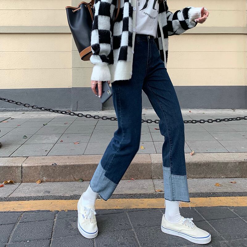 ジーンズ ハイウェストウェストルーズオータムウィンター薄手パンツ 秋物 冬物 ステッチ ブラックストロベリース20134140470