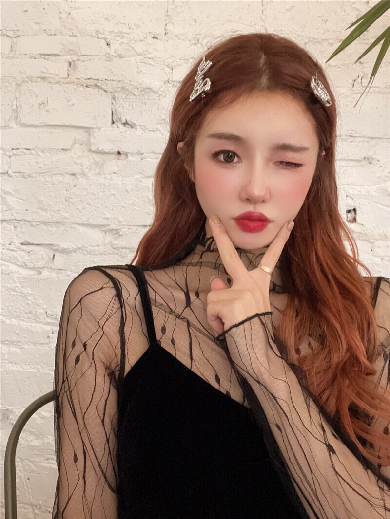 Tシャツ シャツ レースメッシュスタイルブラウス スプリング ロング 春物 ブラックストロベリース61923001912