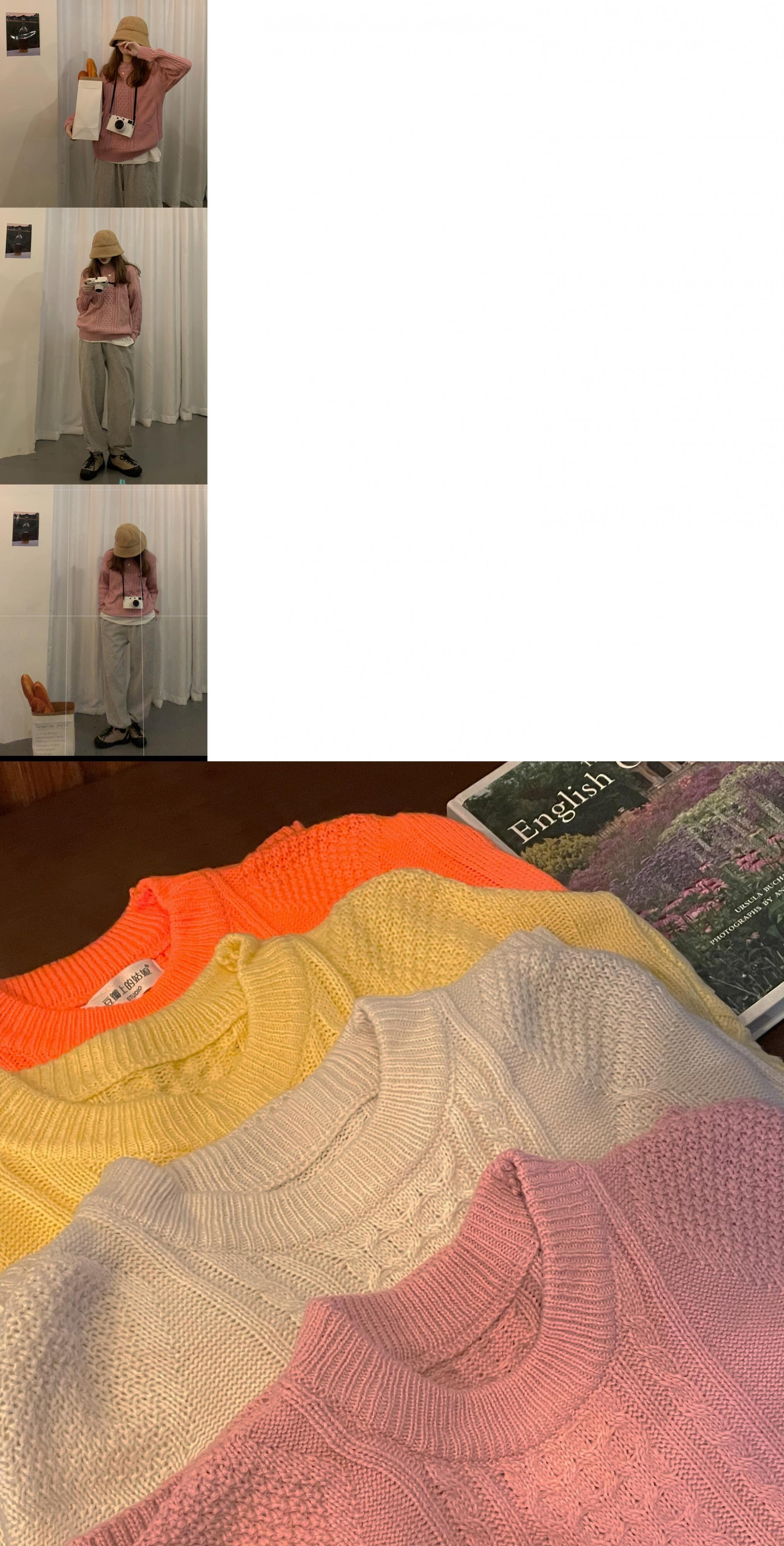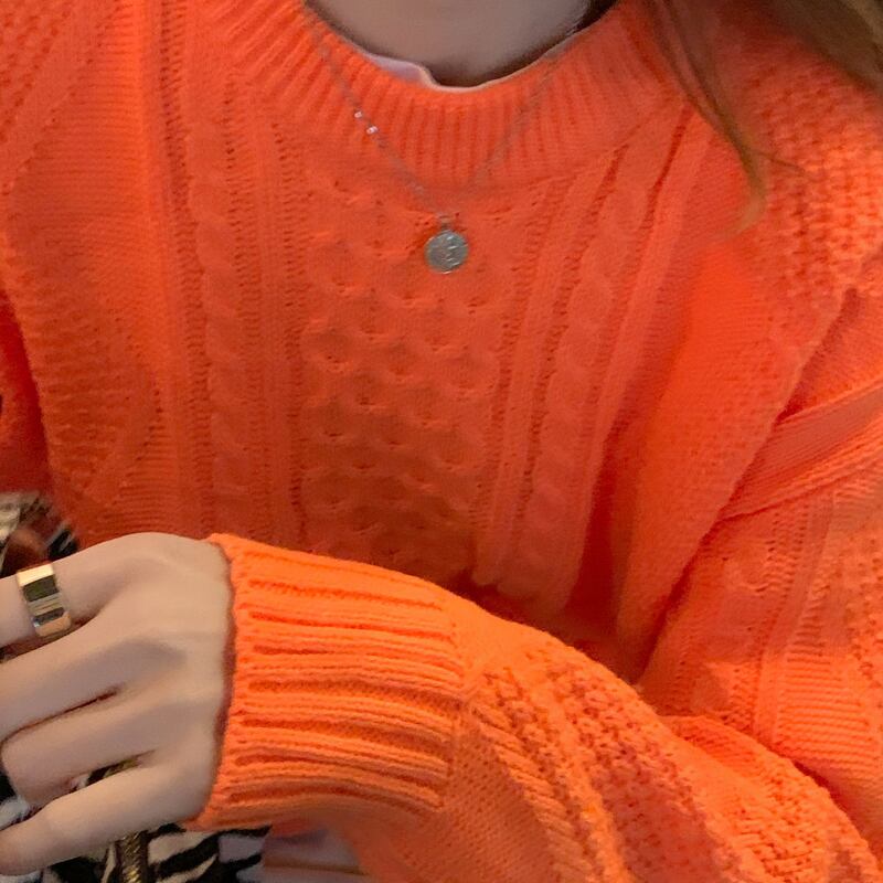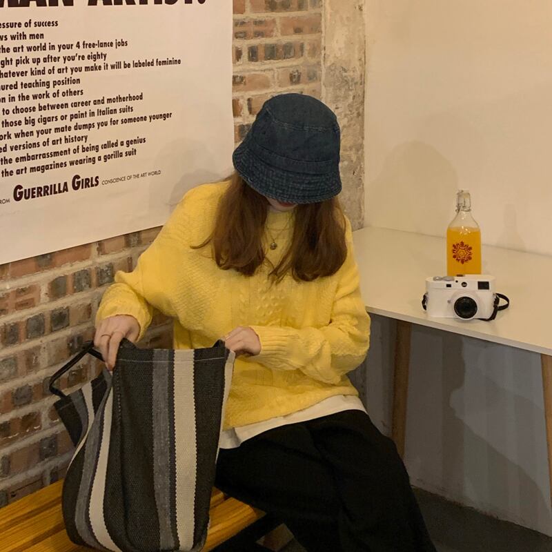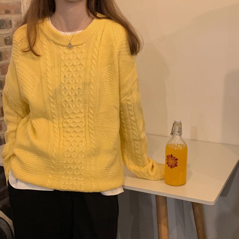 セーター レディースルーズスタンダードニットスプリングイエロープルオーバー トップス レトロ 春物 ブラックストロベリース69077098141